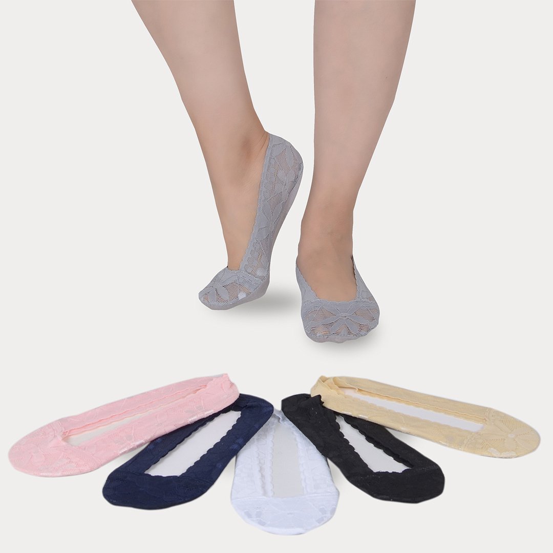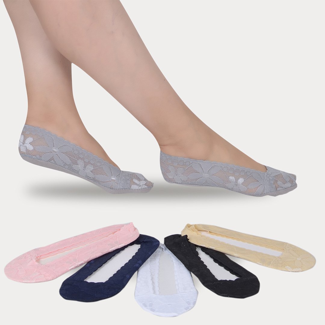 Kaydırmaz silikon bantlı, pamuklu ve görünmez dantel babet çorap.